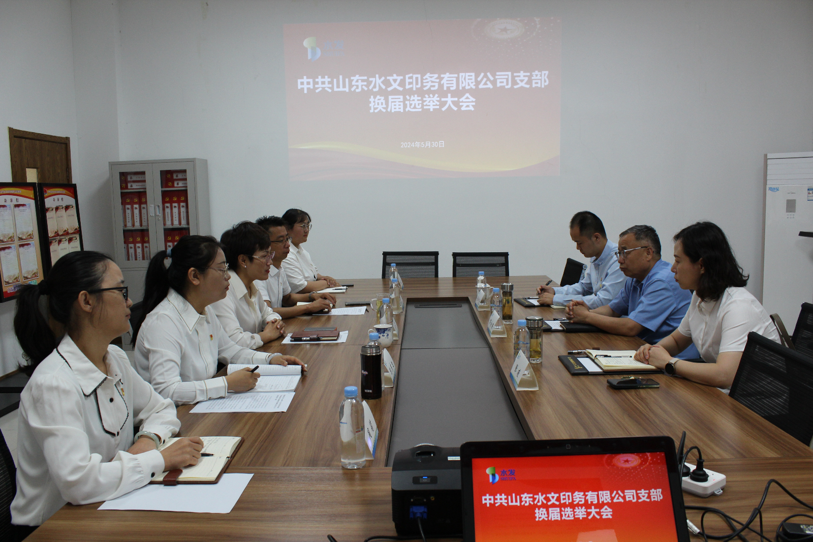 5月30日上午,水文印務(wù)黨支部召開黨員大會,進(jìn)行換屆選舉。水發(fā)水控集團(tuán)(籌)黨委副書記、副董事長蘆永強、黨群宣傳部部長張瑾到會督導(dǎo),公司支部書記、董事長張莉主持會議,全體黨員參會。