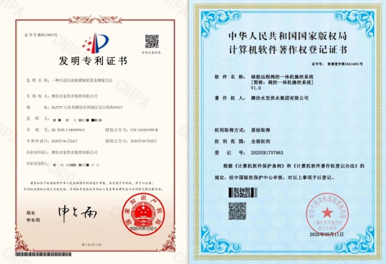 近日,水發(fā)水控在科技創(chuàng)新與知識(shí)產(chǎn)權(quán)領(lǐng)域取得重要進(jìn)展,成功獲得1項(xiàng)發(fā)明專利、1項(xiàng)軟件著作權(quán)及3項(xiàng)實(shí)用新型專利。一系列成果的落地,顯著增強(qiáng)了集團(tuán)技術(shù)儲(chǔ)備與核心競(jìng)爭(zhēng)力,也為城市水務(wù)高質(zhì)量發(fā)展注入關(guān)鍵科技動(dòng)能。