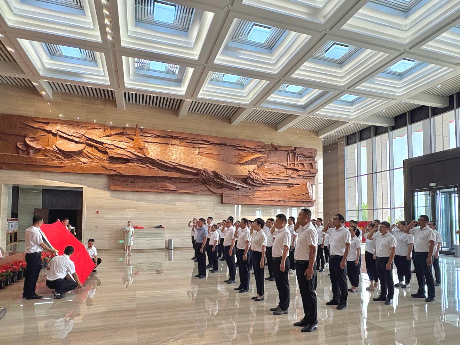 參觀前,全體黨員在黨旗下莊嚴(yán)宣誓,重溫入黨誓詞,鏗鏘有力的誓言,表達(dá)了傳承榜樣精神、堅(jiān)守初心使命的決心。